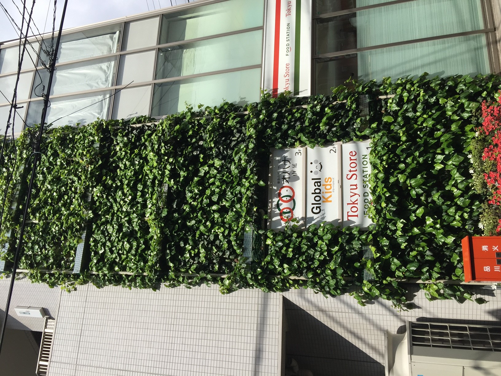 ヘデラカナリエンシスを植栽したプランター式壁面緑化です。